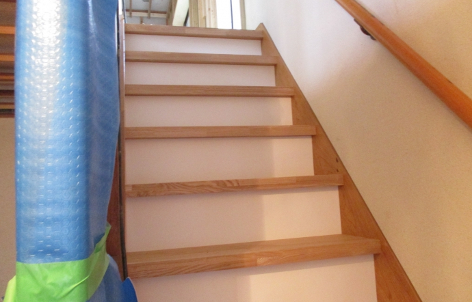 2018.9.5.Wed Mnm邸/大工工事 階段は再利用なのですが、既存の階段の上から、 フローリングと蹴込み板を貼ると写真のように仕上がりました。 新しく付け替えたように綺麗になります。 サッシを入れ替えた箇所に、無垢のポプラ材で製材、加工された 枠も取り付けが完了しました! #201809 #MNM #リノベーション