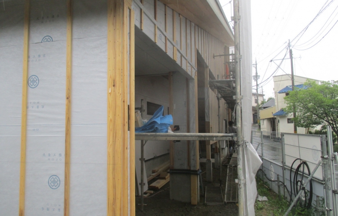 2018.7.10.Tue Mti邸/大工工事 大工工事が順調に進み 残り約2週間で完了予定です。 内部のボード貼りと同時に造作工事が行われ、 外部でも、パワーボードが貼り進められています。 #201807 #Mti #新築
