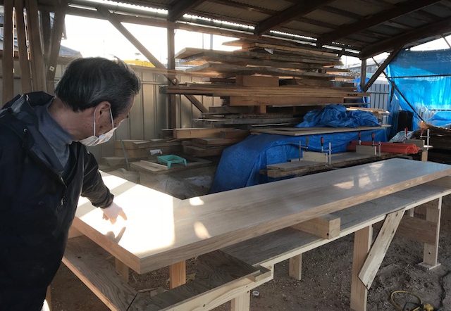 2018.3.13.Tue Try邸/カウンター加工 カウンターに使われる無垢材(タモ)の製材、加工の現場。 大工さんによってきっちり寸法切りされL型につながれました。 さらに綺麗に綺麗に仕上がるように丁寧に磨いていきます。 まだ途中でこの仕上がり。 完成が楽しみです。 #201803 #TRY #リノベーション