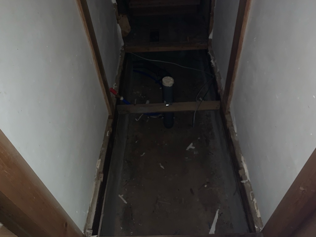 2020.8.28.Fri Urs邸/配管工事・大工工事 お風呂・トイレ等の設備配管工事が終わり、 ユニットバスの換気ダクトの取り付けも行われました。 現在大工工事に入り床の下地が打たれ、 これからサッシの取り付け工事に入ります。 #202008 #URS #リノベーション