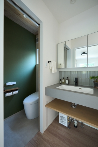 既存のRC造の離れは母屋とも一体感のある外観に建替え。住居スペースはコンパクトながらも水回りや収納など暮らしやすい間取りに。お客様と共にじっくりと考え抜いたお住まいが完成いたしました。