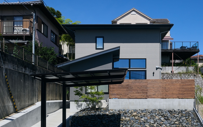 2階はご夫婦の寝室と子供部屋を繋げて、子供の成長に合わせてフレキシブルに仕切れるような間取りに。外構は駐車場からの動線をスロープにすることで、段差なくバギーなどでもそのまま玄関へアクセスできるように。共働きのご家族が子育てもしやすいよう、家事動線なども考えぬかれたお住まいが完成いたしました。